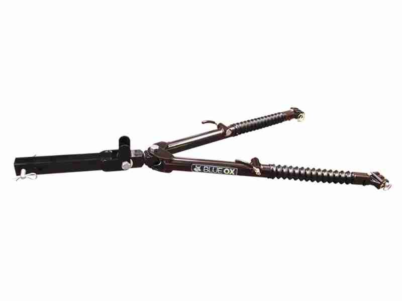 The Blue Ox Ascent BX4370 is rated for smaller cars and SUVs, providing up to 7,500 pounds GVWR. Made of lightweight aircraft-grade aluminum, this tow bar only weighs 31 pounds. When on uneven terrain, the off-set triple lugs and non-binding latches of the Blue Ox Ascent tow bar will make unhooking simple.